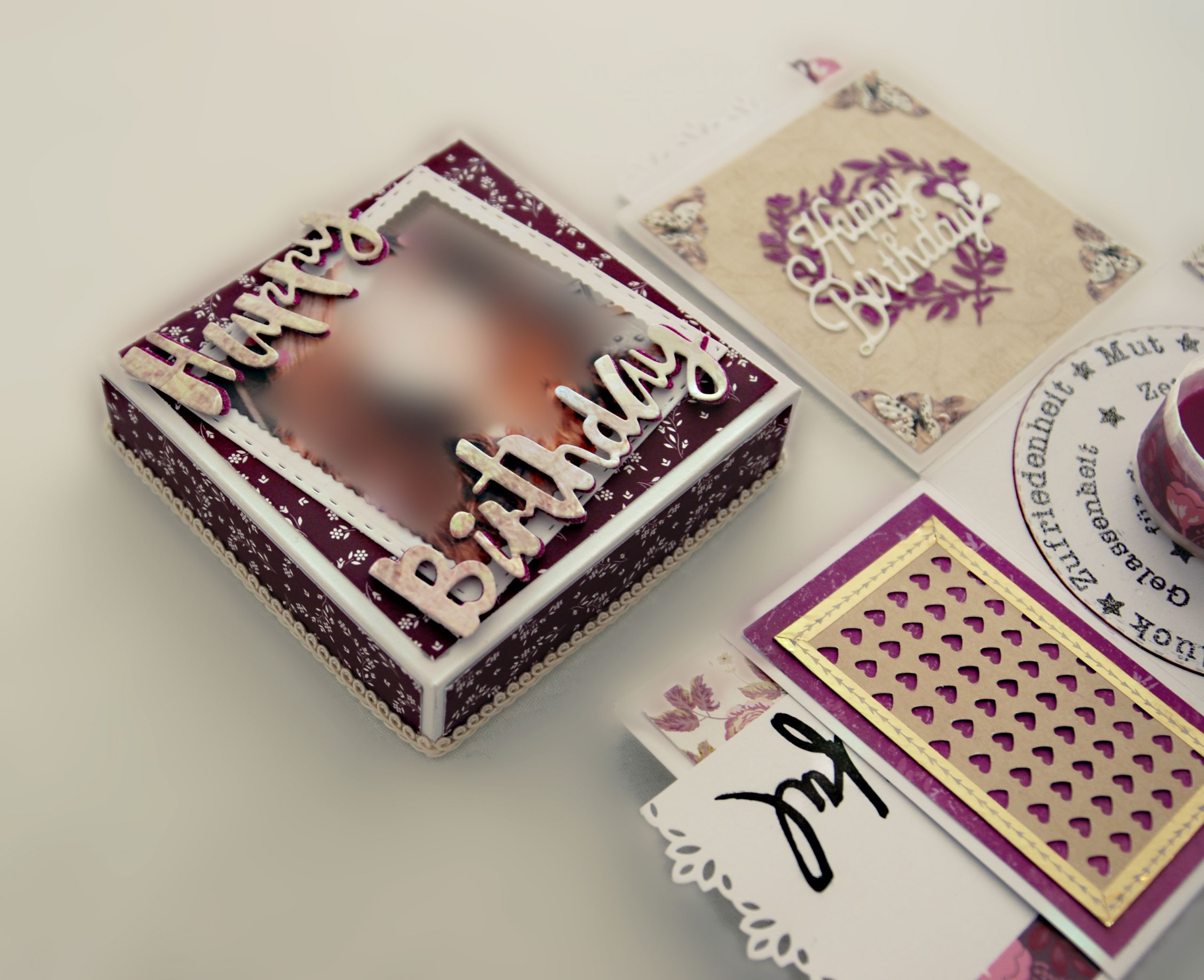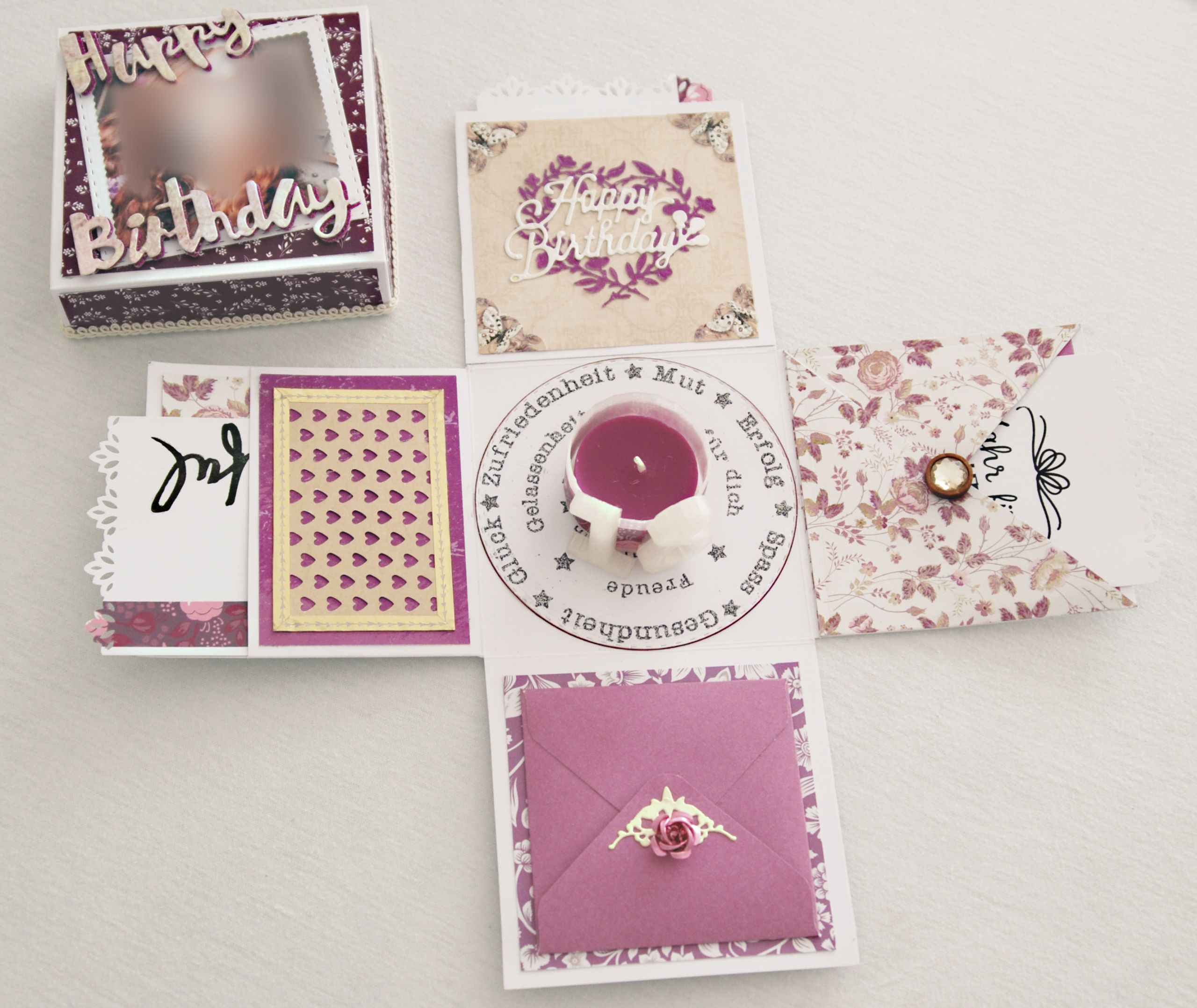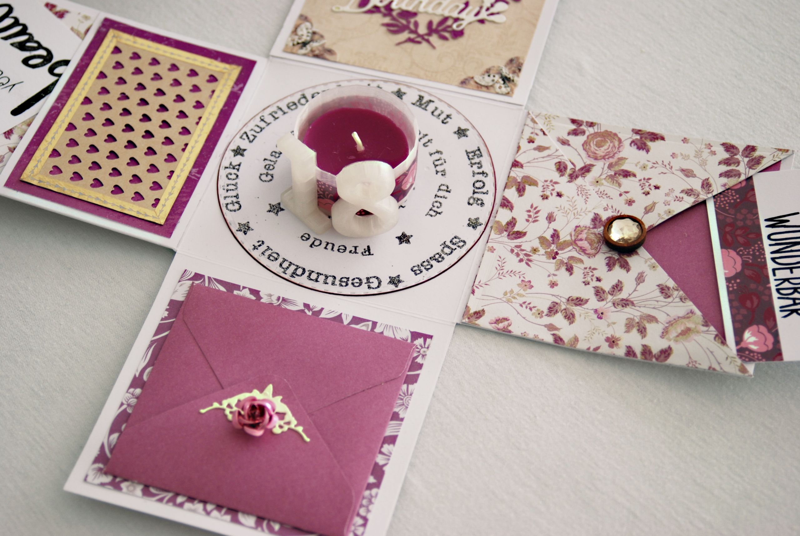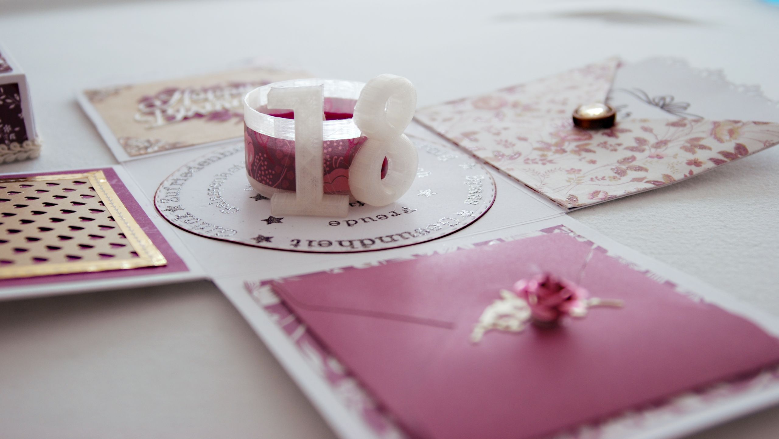 0 By tanja 30/01/2025 Explosionsbox zum 18ten Geburtstag Vorgabe zu dieser Box war: für ein Mädchen, zum 18. Geburtstag, Farbe: violett Material: verschiedenste Papiere, ein Foto, 3D-Schmuckelemente, Zahl 18 aus dem 3D-Drucker